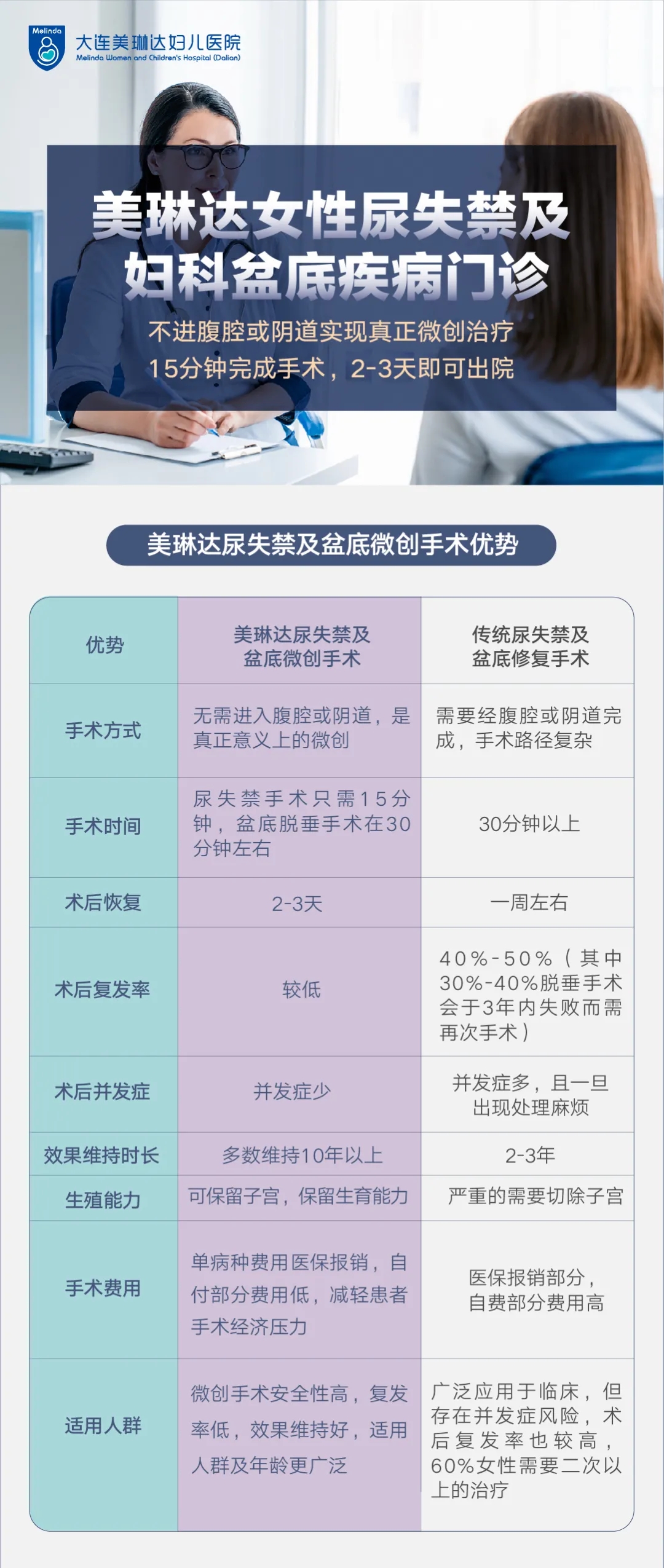 美琳达盆底康复中心依附于专科妇儿医院建立,对于盆底障碍性疾病拥有更加专业、丰富的治疗经验。